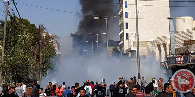 3 פלסטינים נפצעו ועשרות נוספים סבלו היום מחנק בשל דיכוי צעדות יום הזעם בערים בית לחם ואל-בירה בגדה המערבית על ידי כוחות הכיבוש הישראלי.