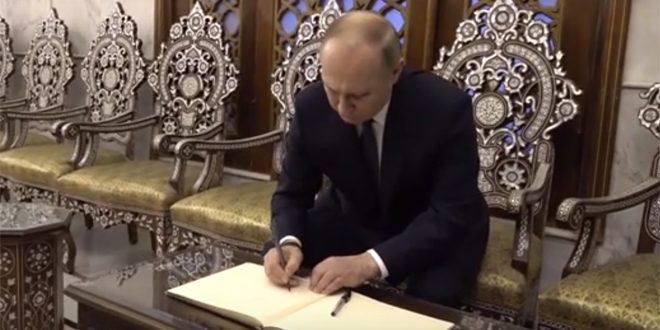 מכתב הנשיא פוטין בפינקס המבקרים במסגד האמוויא הגדול בדמשק