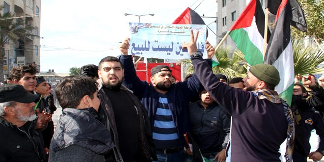 עצרת מחאה בחברון בגנות הפרות כוחות הכיבוש לזכויותיהם של האסירים הפלסטינים ובגנות עיסקת המאה 2020-01-28