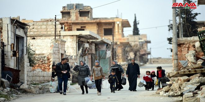 מצלמה של סאנא בעיירה חריתאן בפרבר חלב הצפוני מתעדת את שיבתן של כמה משפחות לעיירה בעקבות הבסת הטרור ממנה
