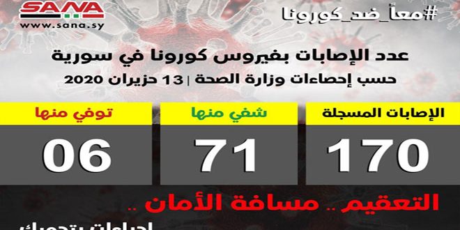 משרד הבריאות הודיע היום על 6 מקרים של הידבקות בווירוס קורונה שאובחנו לאחר שהיו במגע עם אנשים מהעיירה ראס אלמערה בפרבר דמשק, ובכך עלה מספרם של הנדבקים בווירוס קורונה בסוריה עד היום ל-170 מקרים.
