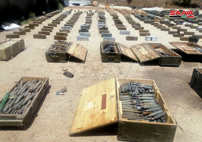 כתב סוכנות סאנא בחומס מסר כי אחרי מעקב מדוייק נתגלו כלי הנשק הנ”ל והתחמושת ליד גבולות חומס-חמאת אשר הוכנו על ידי הטרוריסטים שבפריפריה הצפונית של אידליב לקראת הברחתם.