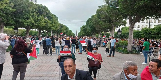 מאות מהתוניסאים פנו היום לרחוב אל-חביב בו רקיבה שבמרכז הבירה תוניס, כדי ליטול חלק בעצרת הזדהות עם סוריה, תחת כותרת “תוניסאים קוראים להחזרת היחסים עם סוריה ולשבירת המצור”.