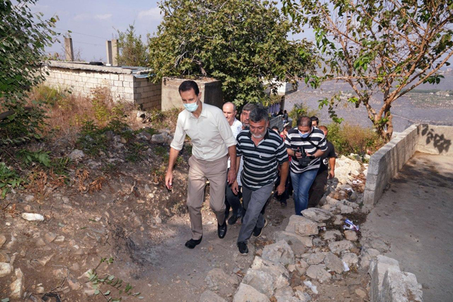 הנשיא אלאסד הגיע לכפר בלוראן במחוז לטקייה ועמד מקרוב על הנזקים 2020-10-13