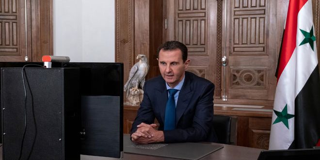 שיחת הנשיא אלאסד עם הנשיא פוטין באמצעות טכניקת זום קונפרנס