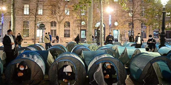 סוכנות פראנס ברס מסרה כי מתנדבים סייעו בהקמת כ- 500 אוהלים בכיכר אלג’מהיריה במרכז פריז בשעה מאוחרת אמש, אך המשטרה הצרפתית הגיעה למקום והתחילה לפרק ולהסיר את האוהלים שבתוכם שהו מאות מהגרים רובם מאפגנסטאן .