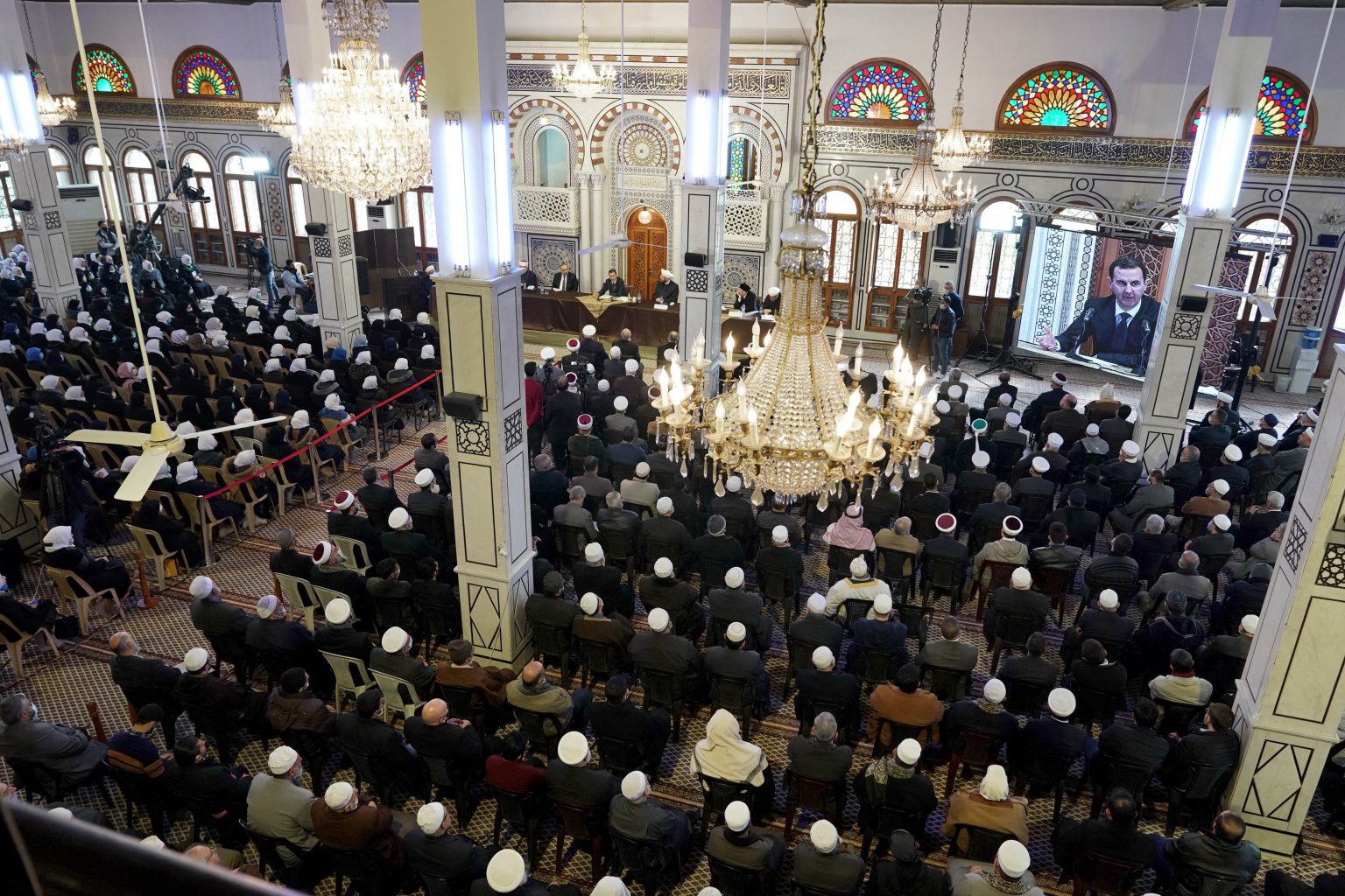 נאומו של הנשיא מר בשר אלאסד בפגישה עם משרד הואקף במסגד אלעות’מן שבדמשק