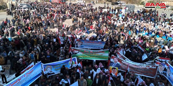המשתתפים בעצרת, בין השאר תושבים מחמולות המחוז, התקהלו בכיכר הנשיא בעיר דיר א-זור והרימו דגלי הלאום ושלטים בגנות הכיבושים האמריקאי והטורקי ובהדגשת הדבקות באחדות ובריבונות שטחי סוריה.