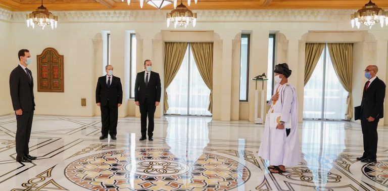 18/04/2021 הנשיא מר בשאר אלאסד קיבל את כתבי האמנותם של שגרירי מוריטניה וארגנטינה החדשים בסוריה 2021-04-18 admin