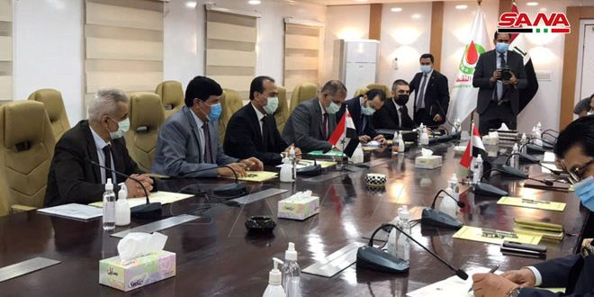 שר הנפט המהנדס בסאם טועמה דן עם מקבילו העיראקי איחסאן איסמאעיל בדרכי שיתוף הפעולה בין סוריה לעיראק בתחומי הנפט, האנרגיה, ההדרכה וחילופי המומחיות.
