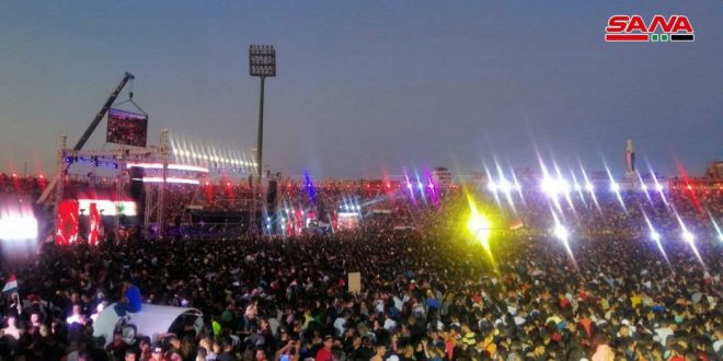 המוני תושבים התקהלו באצטדיון אל-באסל שבעיר לטקיה כדי לחגוג את זכייתו של ד”ר בשאר אל-אסד בנשיאות הרפובליקה הערבית הסורית