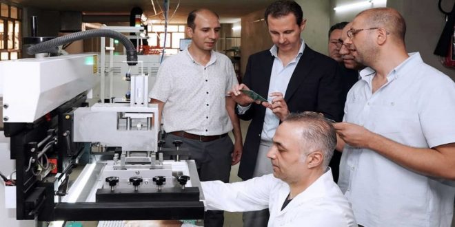 הנשיא בשאר אל-אסד ביקר היום בכמה מתקנים ומפעלים של אתר התעשיה /עדרא/ שבפריפריה של דמשק ואשר הוקמו במהלך תנאי המלחמה הגרועים והצליחו לתפקד טוב חרף כל האתגרים והקשיים.