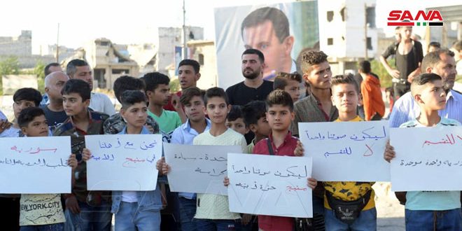 עצרת הזדהות עם תושבי מנבג’ בעמות עם מיליציה קסד בשכונת אל-באב בעיר חלב