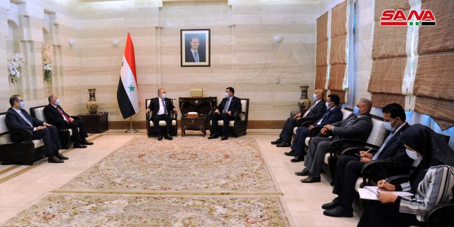 ראש הממשלה המהנדס חוסין ערנוס נפגש היום עם שר משאבי המיים העיראקי מהדי רשיד אל-חמדאני עם המשלחת הנלווית אליו, ושניהם דנו בדרכי שיתוף הפעולה בין סוריה לעיראק מבחינת המיים ומשאבי