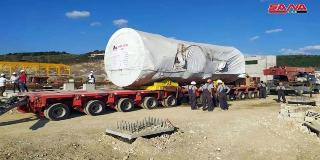 המשלוח הרביעי של העומסים הכבדים, הכוללים את השנאי הראשי של קבוצת הקיטור, הגיעה היום לאתר תחנת הכוח ראסתין בלאטקיה.