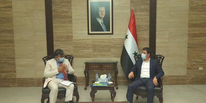 שר הבריאות חסן אל-ע’באש דן היום עם ראש משלחת נציבות האו”ם של ענייני הפליטים בסוריה סיבאנקא דאנא באלא והמשלחת הנלווית אליו, בדרכי שיתוף הפעולה ובמיוחד בסקטור הרפואי וציודו במכשורים הדרושים.