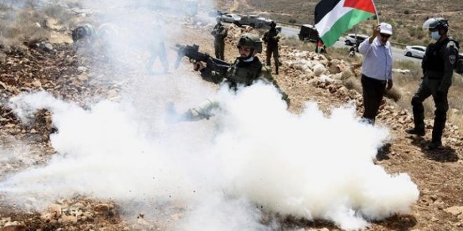 כלי תקשורת פלסטינים דיווחו כי כוחות הכיבוש ירו אש חיה ופצצות גז מרעיל לעבר המשתתפים בהפגנה בכניסה הצפונית לעיר, דבר שגרם לפציעתם של כמה פלסוינים.