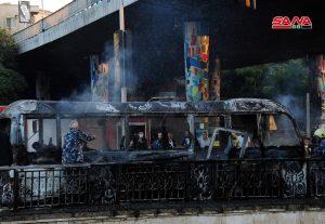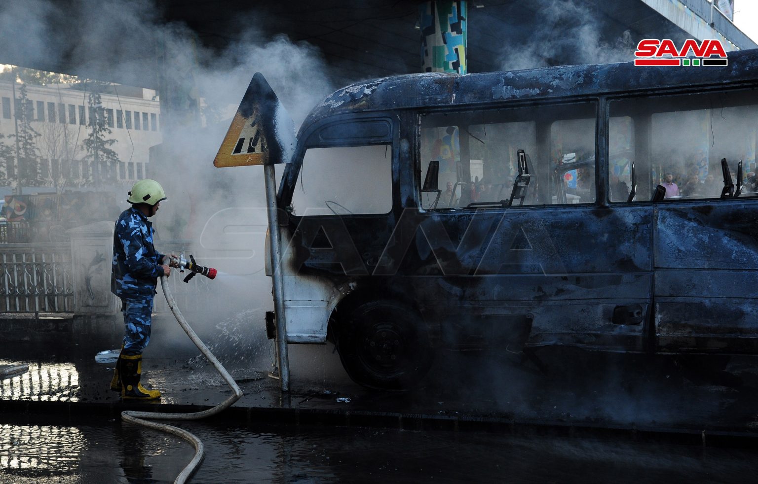 כתב סאנא מסר כי בוצע פגוע טירורסטי באמצעות שני מטעני חבלה במהלך מעבר אוטובוס צבאי ליד גשר אלראיס בדמשק.