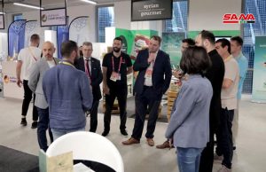 הממונה על הביתן הסורי שם ביריד סקר בפני המשלחת האורחת את מגוון הפעילויות המסחרית והתרבותית שנערכו במהלך המאורע.