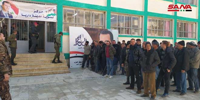 תהליך ההסדרה נמשך בעיר דאריה שבדרום-מערב דמשק במרכז שנפתח שלשום על ידי הגופים הנוגעים בדבר בבניין בית הספר השמיני במרכז העיר, במטרה להסדיר את מצבם של מבוקשים, משתמטים ובורחים משירותי החובה המילואים.