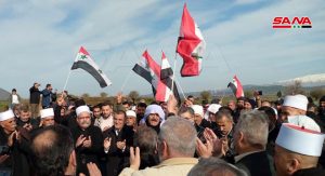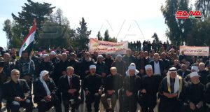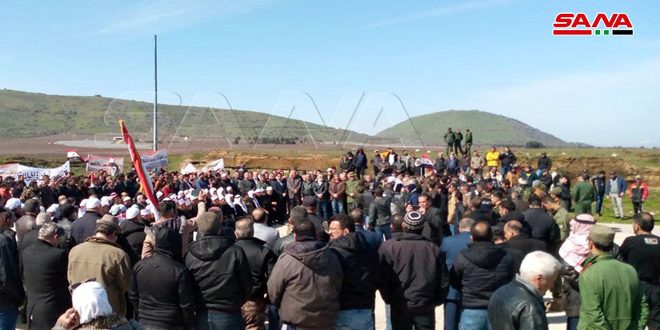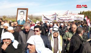 האזרחים במחוז אלקוניטרה ארגנו היום עצרת מחאה ליד מעבר העיר המשוחררת כאות סירוב לצעדי הפרובוקציה של שלטונות ישראל וההתערבות שלה בענייני הפנים של סוריה.