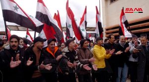 דמשק בעיר אל-סו’ידאא, קיימו היום עצרת הזדהות עם רוסיה בעימות עם המדיניות האמריקנית והמערבית הנועדה לזעזע את ביטחונה ויציבותה.