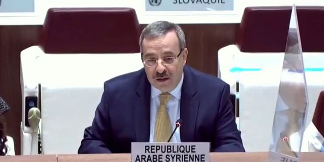 נציג סוריה הקבוע בלישכת האו”ם ובארגונים הבינ”ל שבג’נבה השגריר חוסאם א-דין אלא אמר היום במהלך ישיבה של מועצת זכויות האדם כי הדו”ח של הוועדה מוליך שולל מבחינת הטיפול במצב השורר בסוריה ומתעלם מהאתגרים הענקיים שעומדים בדרכה כתוצאה למלחמה הטרוריסטית אשר הוכרזה נגדה על ידי גורמים אזוריים ובינ”ל שכבשו חלקים משטחיה שלא לדבר על השתקפויות ההליכים הכלכליים שהוטלו עליה ואשר מנעו מתושביה להשיג את המזון, התרופות והנפט כתוצאה לשוד האוצרות הלאומיים של בני עמה.
