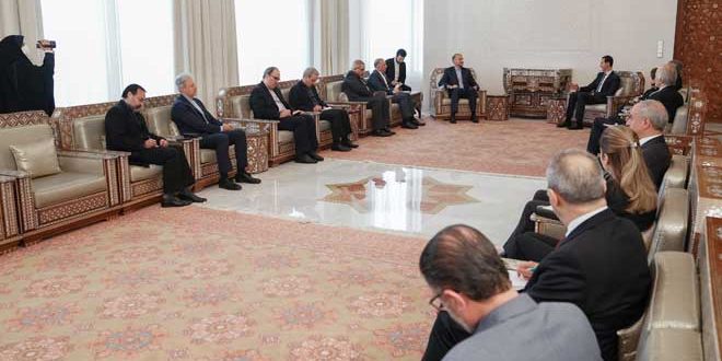 והמשלחת הנלווית אליו, ובמהלך הפגישה נידונו קשרי שיתוף הפעולה בין סוריה לאיראן בנוסף למאמצים שמשקיעים שני הצדדים כדי לבצע את תוכנם של ההסכמים הדו-צדדיים ובמיוחד בתחומי הכלכלה והמסחר חרף ההליכים הבלתי לגטימיים והחד צדדיים שהטיל המערב על שתי המדינות, גם כן נידונו צעדי עיבוי המאמצים כדי להדק עוד ועוד את המכנים המשותפים שבין שני העמים הסורי והאיראני.