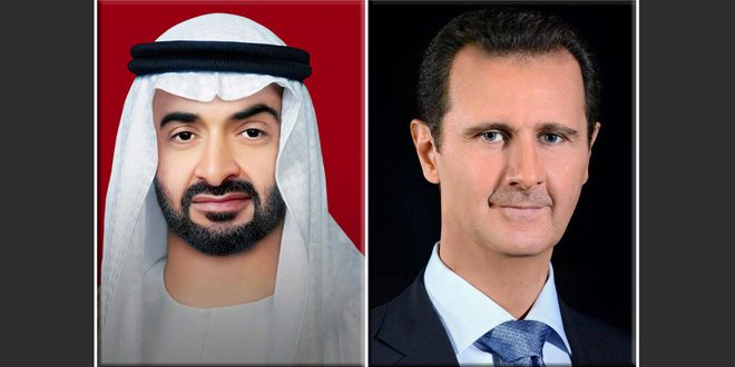 הנשיא מר בשאר אל-אסד בירך את השיח’ מוחמד בן זאיד אל נהיאן על בחירתו כנשיא לאיחוד האמירויות הערביות.