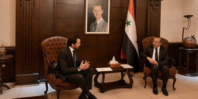 השר של המנהל המקומי והסביבה שהוא גם כן יו”ר וועדת הסיוע העליונה המהנדס חוסיין מח’לוף, דן היום עם סגן המנכ”ל הארצי של תוכנית התזונה העולמית בדמשק רוס סמית’, בתחומי שיתוף הפעולה הדו-צדדי ובדרכי חיזוקם בהתאם למצרכי התושבים.
