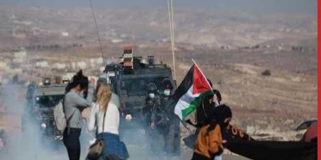 כוחות הכיבוש הישראלי והמתנחלים דכאו היום ארוע של נטיעת עצים באזור מסאפר יאטא שבעיר אלח’ליל בגדה המערבית.