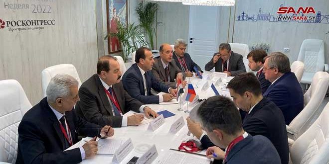 שר הנפט והמינרלים המהנדס בסאם טועמה דן עם שר האנרגיה הרוסי ניקולאי שולגינוב בפיתוח וחיזוק שיתוף הפעולה בין סוריה לרוסיה בתחומי האנרגיה.