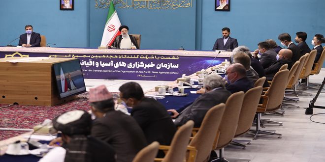 דבריו של ראיסי באו במהלך פגישתו עם המשתתפים בישיבת האסיפה הכללית של ארגון סוכנויות הידיעות באסיה ובאוקינוס השקט שמתכנסת בטהראן בהשתתפות הסוכנות הערבית הסורית לידיעות סאנא, בציינו לחשיבות כלי התקשורת בשמירת זהות ועצמאות המדינות בפני המתקפות על תרבות והשכלת העמים העצמאיים .