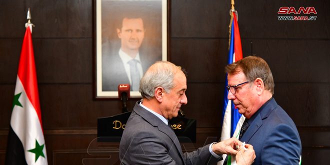 הנשיא מר בשאר אל-אסד העניק את מדליית הזכאות הסורית ממדרגה ראשונה לשגריר קובה בדמשק מיגיל בורטו בארגא, לאות כבוד למאמציו בחיזוק ובקידום היחסים בין שתי הארצות.