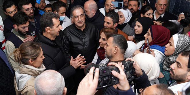 11/02/2023 הנשיא מר בשאר אל-אסד והגברת אסמה אל-אסד ביקרו במטבח השדה בחאלב המוקדש לחלוקת מזון לנפגעי רעידת האדמה 2023-02-11 nedal1