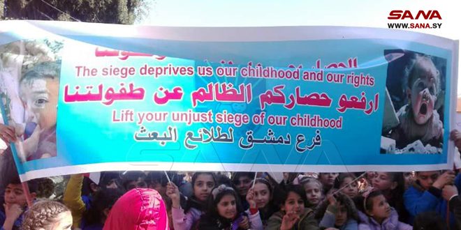 עצרות מחאה לילדי ארגון חלוצי הבעת’ נתקיימו בכל בתי הספר בסוריה ובכיכרות המרכזיות בכל המחוזות בקריאה להסיר את המצור נגד סוריה, ואת הסנקציות הבלתי מוצדקות נגד הילדות והאנושות.