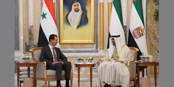 הנשיא מר בשאר אל-אסד והשייח’ מומחד בן זאיד אל נהיאן דנו בהתפתחויות ובשיתוף הפעולה הכלכלי בין שתי המדינות