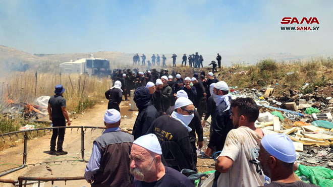 כוחות הכיבוש הישראלי החישו תגבורת צבאית בכדי לכתר את השטחים החקלאים של האזרחים הסורים בגולן למען הקמת טורבינות הרוח בגולן הסורי הכבוש.