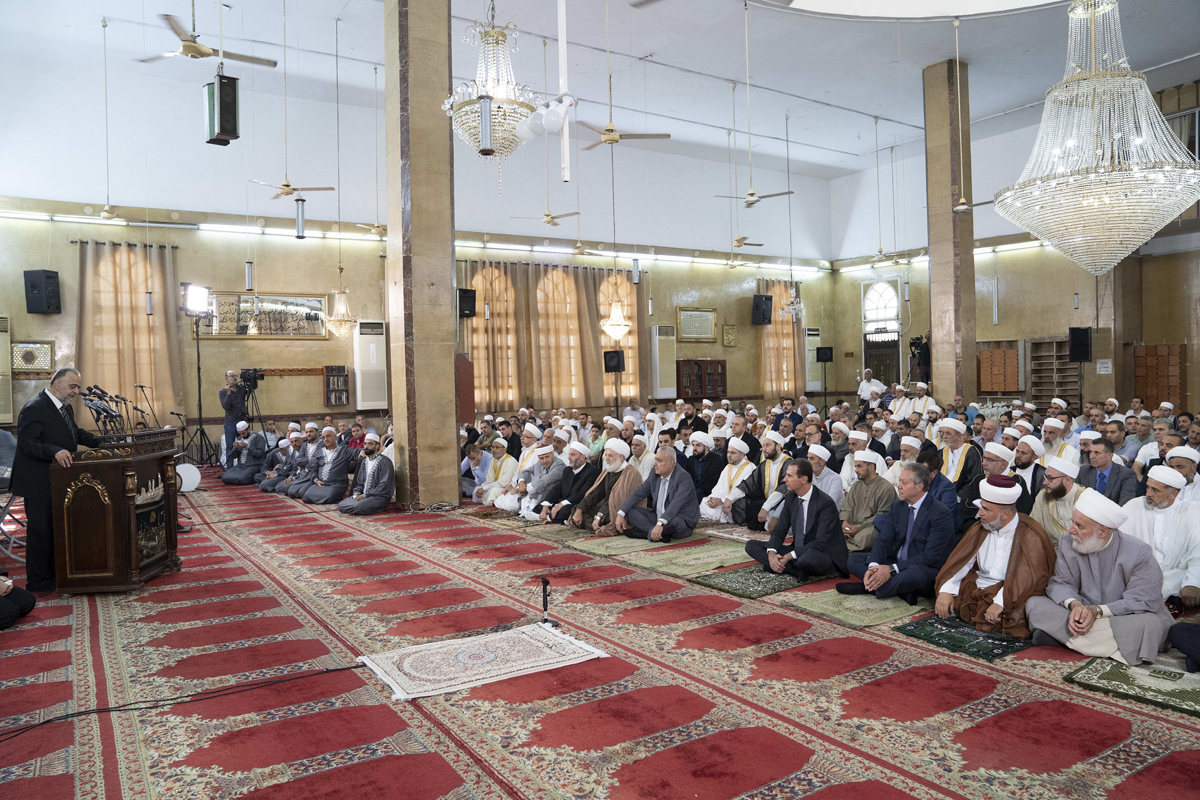 הנשיא אל-אסד הצטרף לחגיגה הדתית שקיים משרד הו'קף במסגד עומר בן אל-ח’טאב בעיר לטקיה לרגל יום ההולדת של הנביא מוחמד 2023-09-28