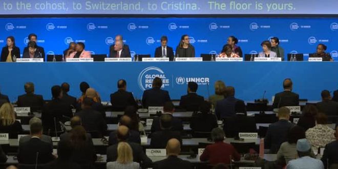 בעיר השוויצרית ג’נבה פרצו הבוקר עבודות הפורום העולמי השני של הפליטים בהשתתפותה של משלחת מטעם הרפובליקה הערבית הסורית בראשותו של בסאם סבאע’ סגן שר החוץ והמהגרים, והנציב העליון של האו”ם לענייני פליטים פיליפו גראנדי ציין כי בעולם ישנם 114 מיליון פליטים פנימיים, אבל ברצועת עזה המצב מסוכן למכביר ומועה”ב יושבת בחוסר מעש, דבר הדורש ממזכ”ל האו”ם לעשות להפסיק את האש שם לאלתר, אבל הארגונים ההומנטריים כולל בהם הנציבות העליונה זקוקים ל-400 מיליון דולר כדי להגיב לדרישות הפליטים.