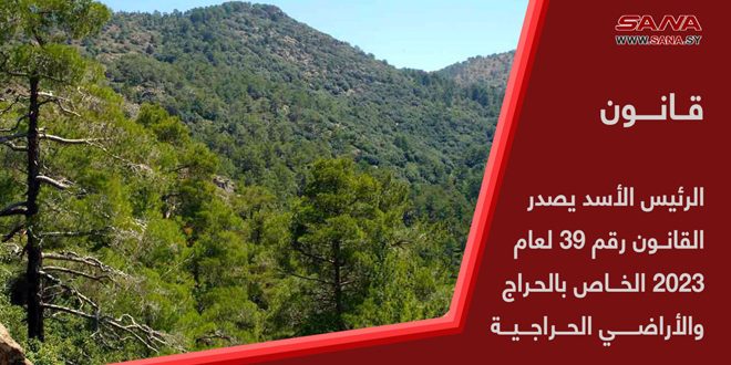 הנשיא אל-אסד מוציא את החוק מס' (39) לשמירה על ענף היערות ולהבטחת לו מנהל בר-קיימא 2023-12-25