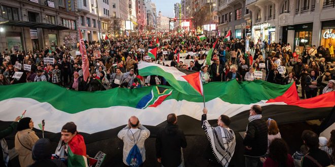 בבירה הספרדית מדריד נתקיימו אמש הפגנות המוניות רבות משתתפים כאות תמיכה בעם הפלסטיני וקריאה להפסקת פשע רצח העם שכוחות הכיבוש הישראליים מבצעים נגד הפלסטינים ברצועת עזה.