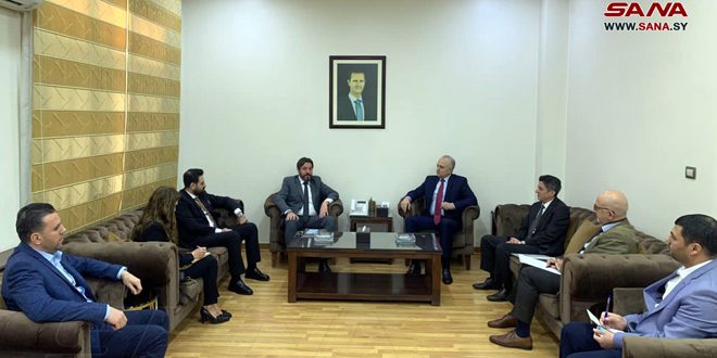 שר התחבורה המהנדס זוהיר ח’זים דן עם שגריר אבח’זיה בדמשק מוחמד ג’לאלוביץ’ בדרכי פיתוח יחסי שיתוף הפעולה בתחומי התחבורה הימית, האווירית והיבשתית בין שתי המדינות.