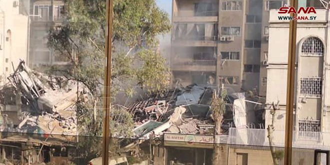 האויב הישראלי תקף היום בניין בשכונת אלמזה בדמשק.