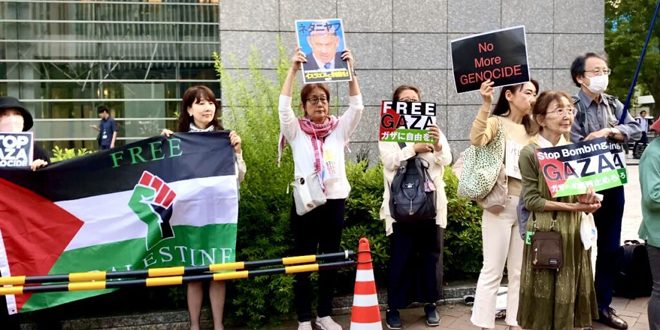 בסולידריות עם העם הפלסטיני ... מפגינים יפנים דורשים מוושינגטון להפסיק את תמיכתה ב"ישראל" 2024-05-25