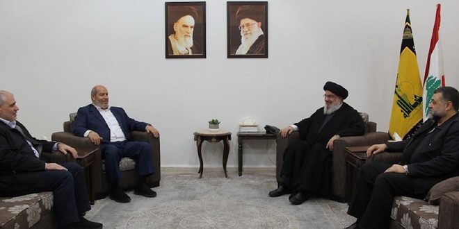 מזכ”ל חיזבאללה מר חסן נסראללה, דן עם משלחת בכירה מתנועת חמאס בראשות ח’ליל אל-חייה בהתפתחויות ברצועת עזה בפרט ובפלסטינה הכבושה בכלל, ובתנאי חזיתות התמיכה בלבנון, בתימן ובעיראק.