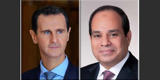 הנשיא מר בשאר אל-אסד קיים שיחת טלפון עם נשיא מצרים עבד אל-פתאח א-סיסי, במהלכה בירך אותו לרגל יום השנה למהפכת ה-30 ביוני, בה העם המצרי נצח על הקיצוניות.