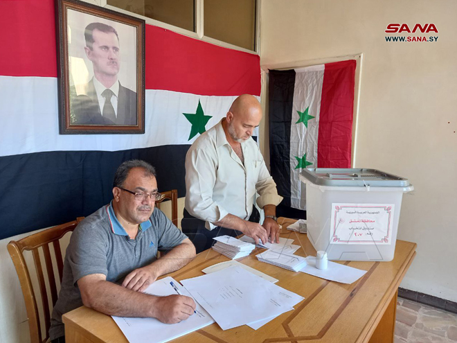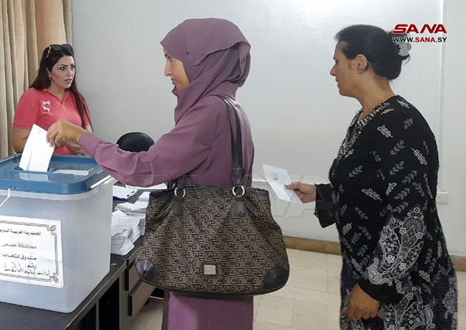האזרחים הסורים פנו מאז שבע בבוקר לקלפיות כדי לבחור את נציגיהם למועצת העם לסיבוב החקיקה הרביעי.