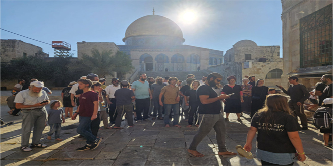 13/08/2024 אלקודס – סאנא מאות מתנחלים ישראלים פרצו לפנות בוקר למסגד אל-אקצא. סוכנות ו’פא דיווחה כי 800 מתנחלים קיצונים פרצו למסגד אל –אקצא דרך שער המוגרבים, במסגרת סיורי הפרובוקציה שלהם נגד הפלסטינים . מאות מתנחלים פרצו למסגד אל-אקצא 2024-08-13 sammar