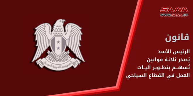 14/11/2024 דמשק – סאנא נשיא הרפובליקה ד”ר בשאר אל-אסד אישר היום 3 חוקים חדשים המיועדים לפתח את מכניזם העבודה בסקטור התיירות, דבר המבליט בגדול את תדמיתה התרבותית של המדינה הסורית. 3 חוקים חדשים לפתח את סקטור התיירות 2024-11-14 mouhmad